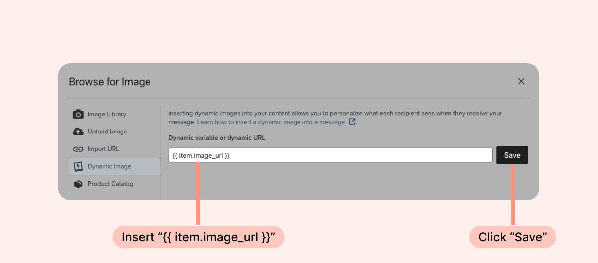 - Inside your newly created section block, add a dynamic image that uses the following Loox parameter: