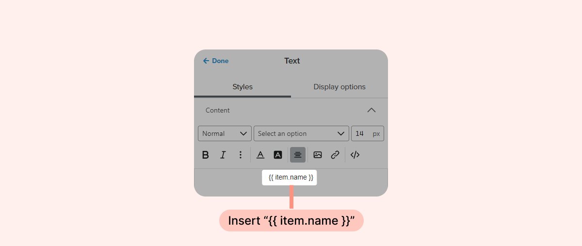 - To display the customer's purchased items in the email, add a text block with the following Loox parameter: