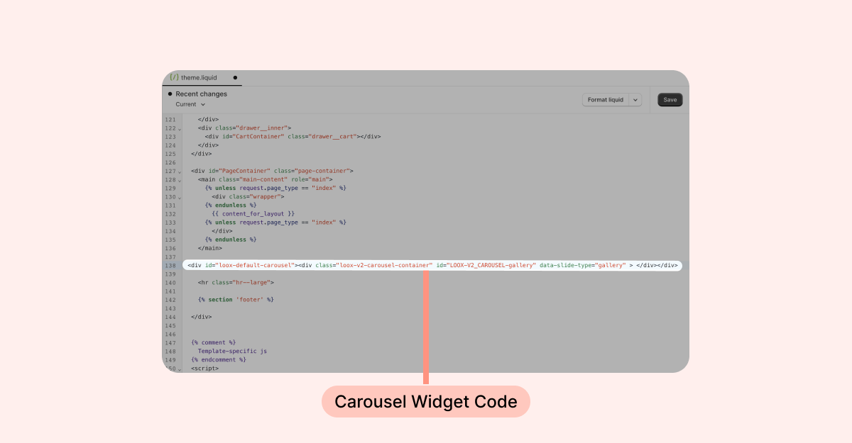 - Copy the code of the Carousel Widget you would like to display: