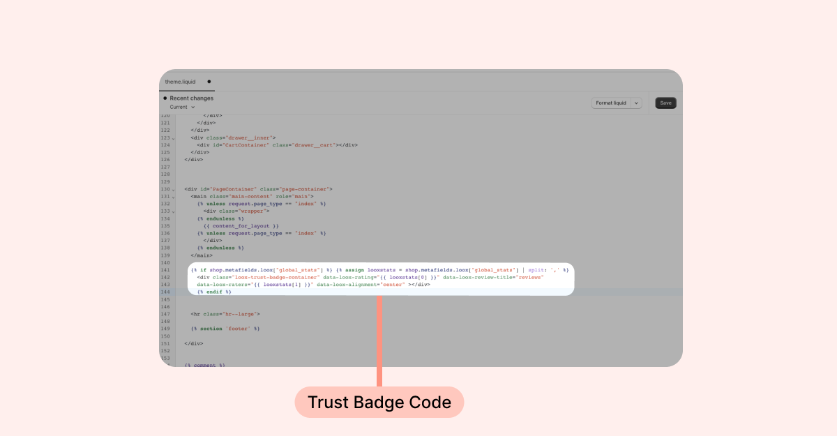 To manually integrate the Loox Trust Badge with your homepage by code:
