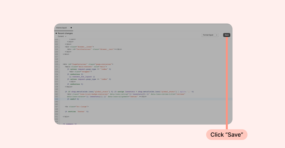 Integrate and display the Loox Trust Badge on your vintage theme (Shopify 1.0 theme) homepage by adding the widget’s code to your theme.