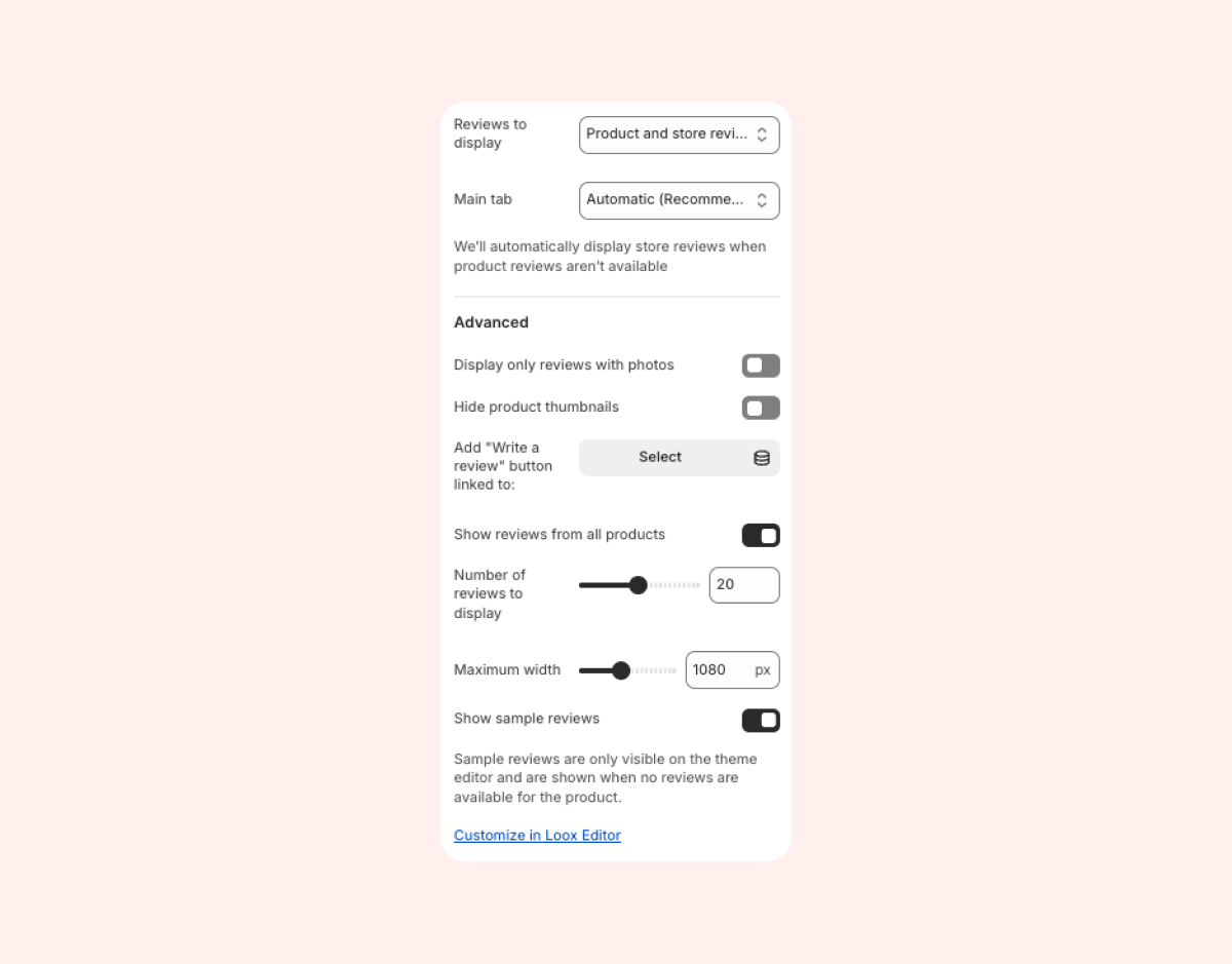 Customize the Loox Reviews Widget to fit your brand’s look and feel.