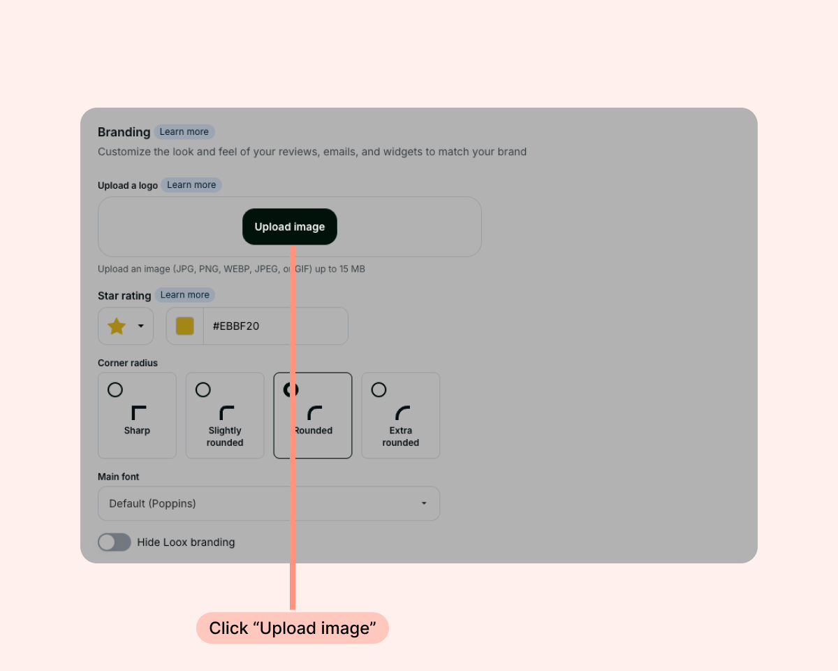 - Under "Upload a logo", click "Upload image" and select your logo: