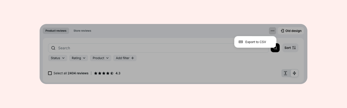 - For product reviews, click "Export to .csv" under the Product reviews tab