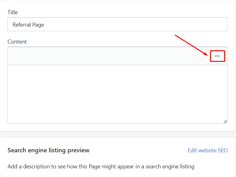 Under "Content", click the "<>":