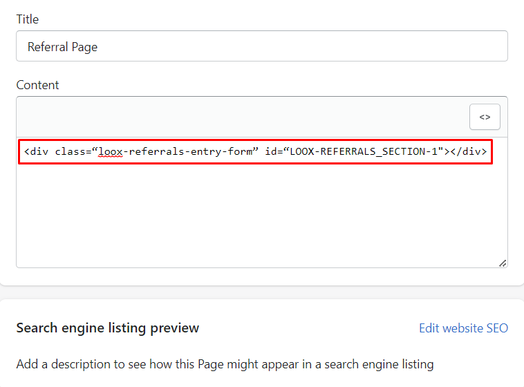 To create a dedicated Loox Referral page via code: