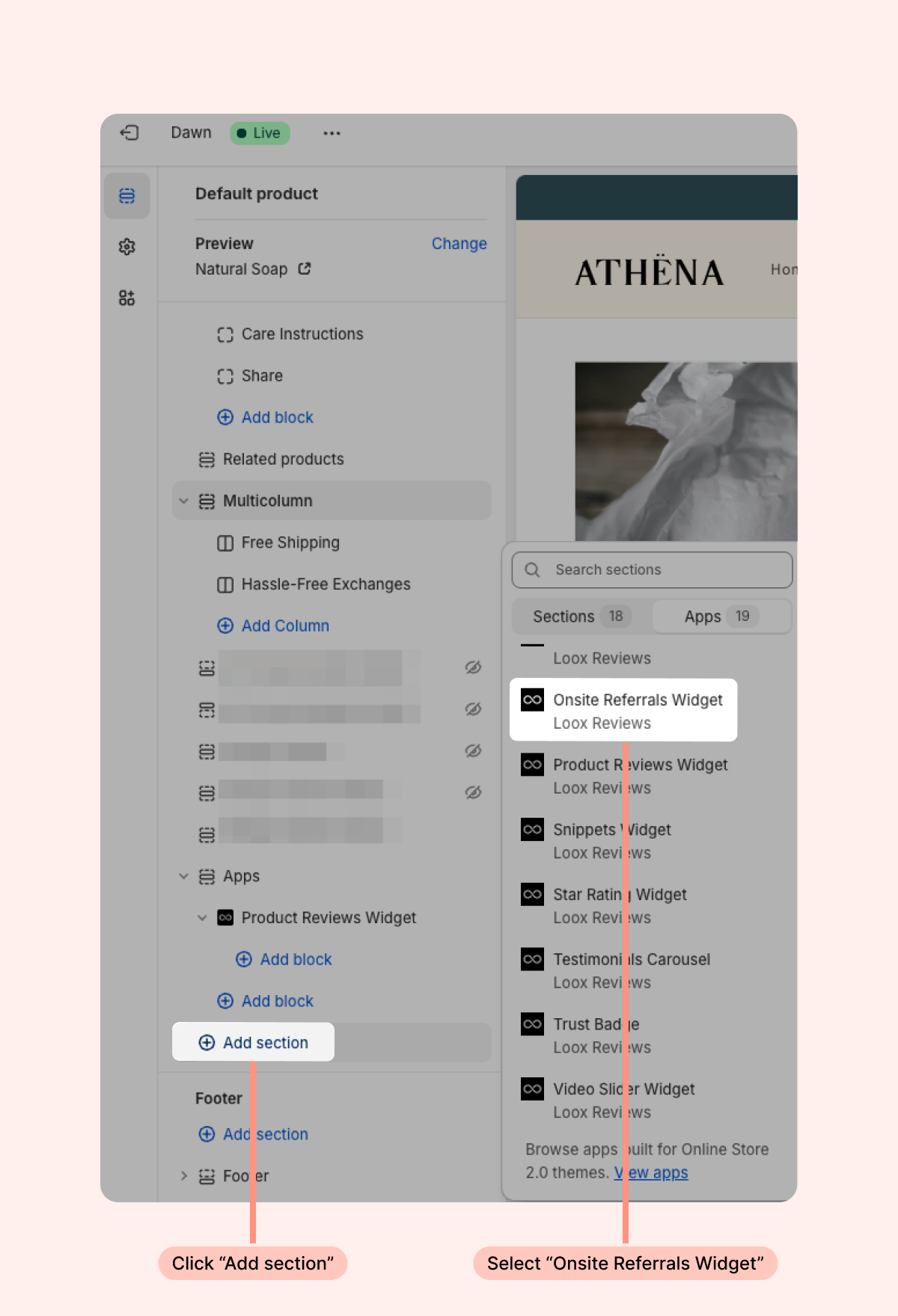 To display the Loox Onsite Referrals Widget on your store: