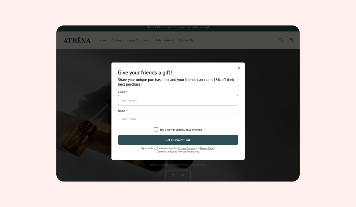 Allow your visitors to sign up and receive referral links they can share with friends and family, earning rewards in the process.