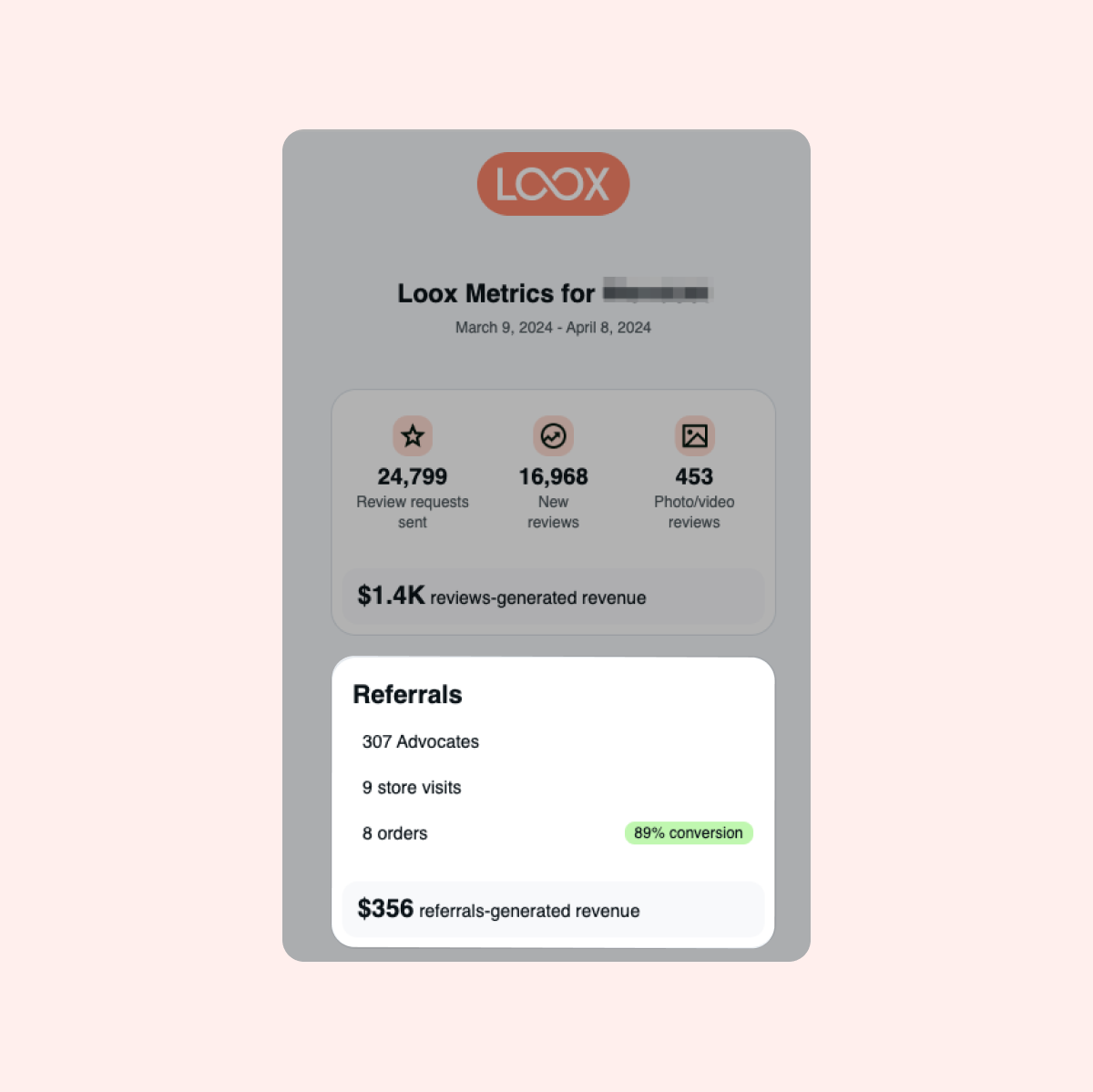 Your referrals performance will also be reflected in your monthly Loox Metrics email
