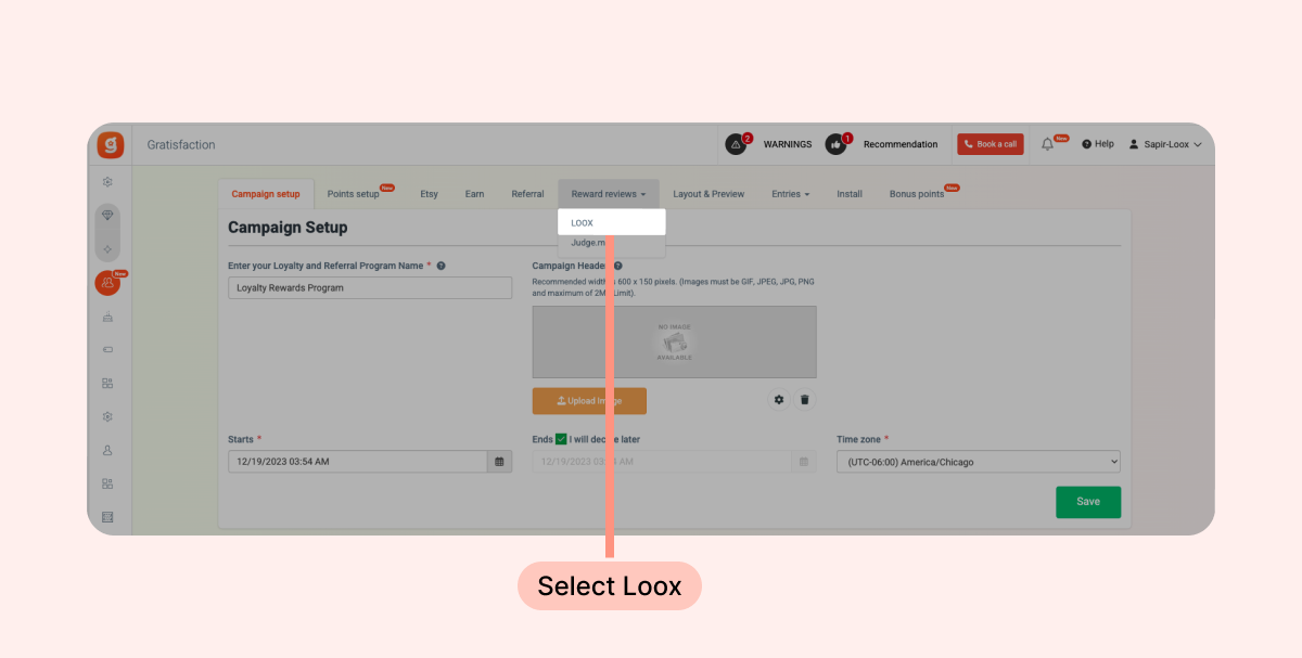 - Click "Reward reviews" and select Loox.