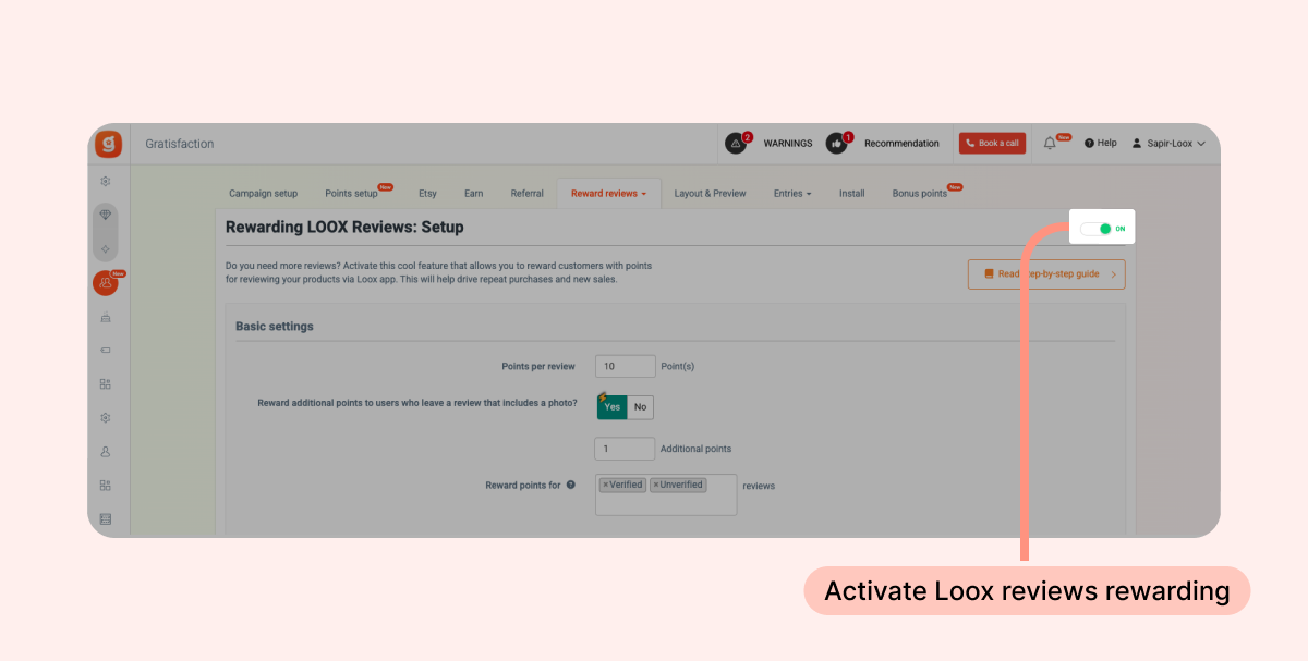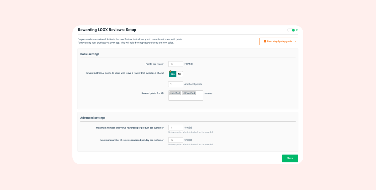 - Activate the option to reward Loox reviews.