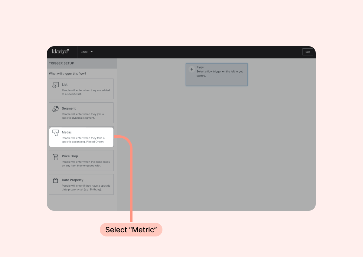Inside the flow’s “Trigger setup” page, select “Metric” as your trigger: