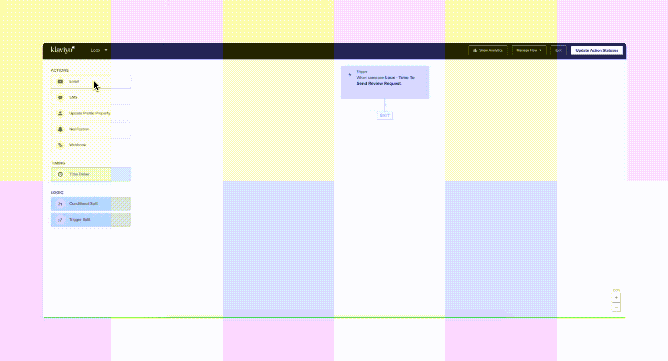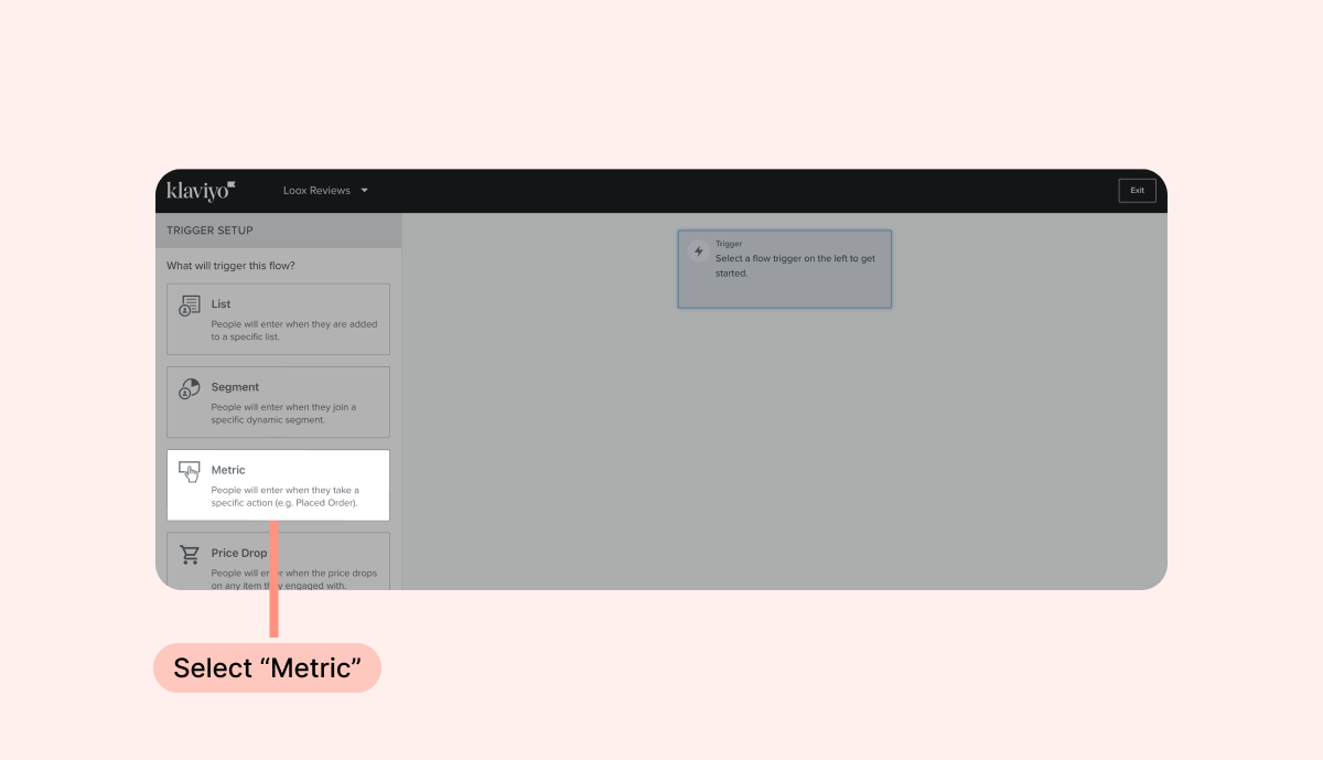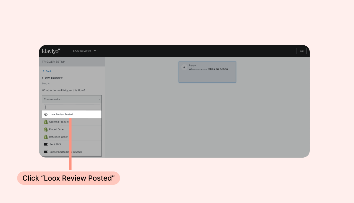 Create a review request email flow using a Loox trigger on Klaviyo.